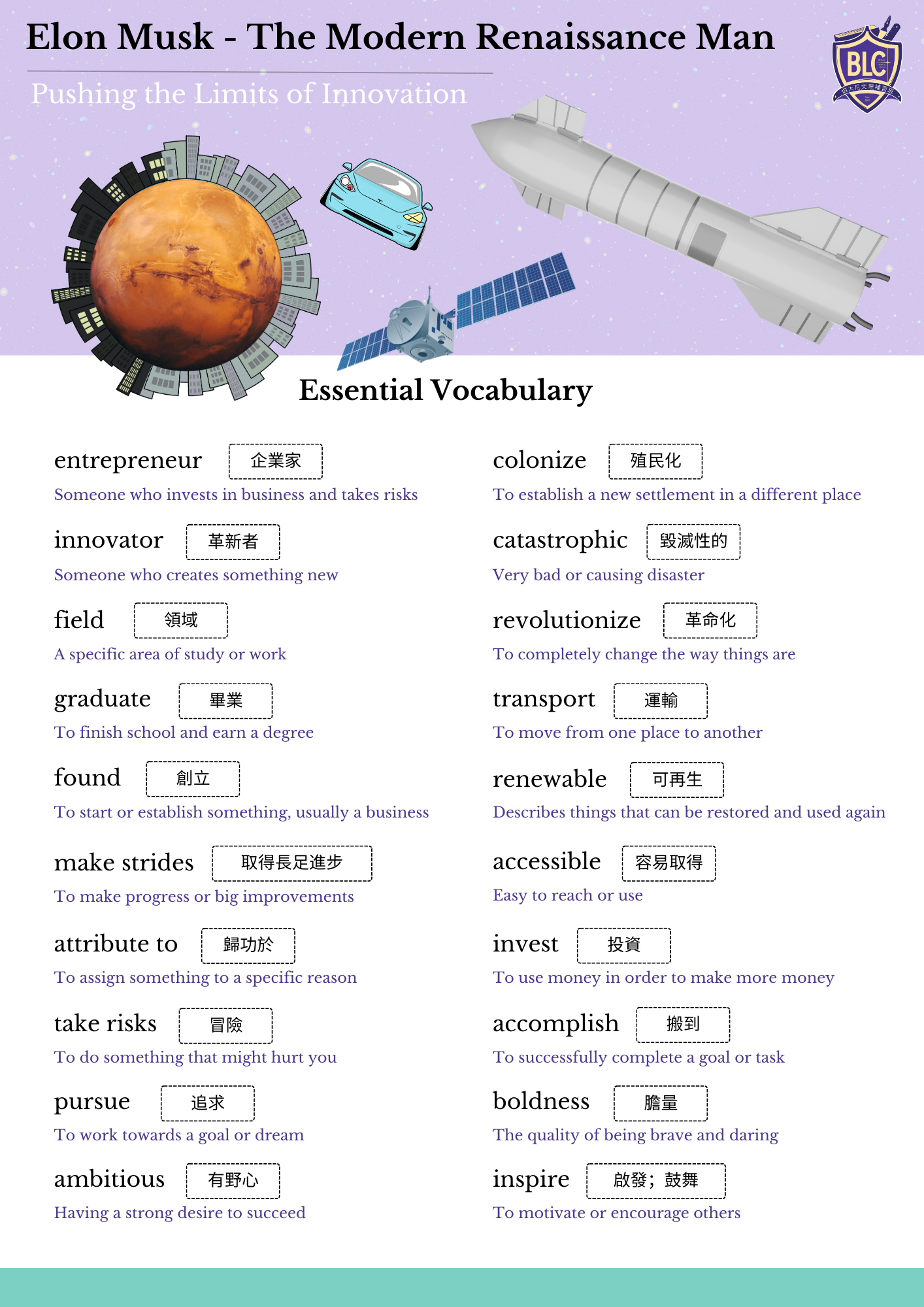 伯大尼文理補習班創立於2003年,初始的教育理念為學子量身打造菁英英語教學課程,增進個人全球競爭能力。 在累積多年的教學經驗與專業老師及家長們的的配合努力下,我們成為了大安區首屈一指能夠為學生提供廣泛主題及完整教育課程的補習班。我們不僅為國小到高中階段的學生打造廣泛多元的英語課程,同時我們還因應台灣12年國教及108課綱,提供與學校課程相關的學科補強,在多方條件下許多學生也順利進入了他們心目中理想的第一志願,我們以其成功倍感興奮與驕傲。 為了提高學生的學習能力,我們根據每一位學生的程度,嚴謹的規劃每一堂課程。透過我們的小班教學,我們可以與學生進行學術性的密切互動與合作,訓練每一位學生思考的靈活度及對事情的專注力,提升成功的機率。 在伯大尼的價值觀中,我們從不猶豫聘請最好最合格的教師來帶領學生通往成功的道路。我們深信每位學子都與眾不同,更不會因為學習的慣性而放棄嘗試輔導任何學生。 如果您想了解更多,可以點擊下面〝課程〞的選項,或者您可以來電聯絡我們,能夠為您服務、解決您所關心的問題,是我們的榮幸。 ~ 別人看到的是你的孩子的成績,我們看到的是他們的未來~